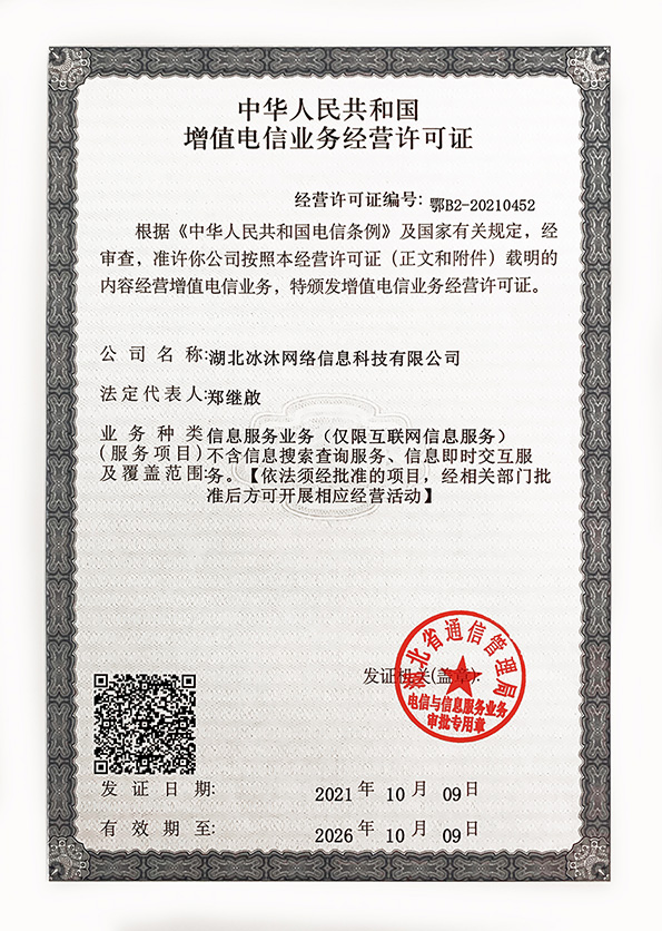 增值電信業(yè)務(wù)經(jīng)營(yíng)許可證 鄂B2-20210452